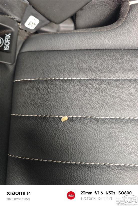 副驾驶后排座椅因为质量问题掉了一块1厘米*1厘米大小皮面,经销商经过检查鉴定无法给出结果,报告给厂家凭照片结论是人为损坏,厂家不给解决。