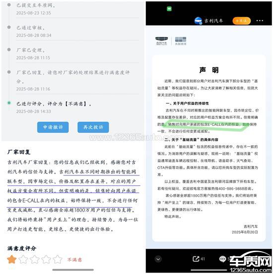 吉利汽车厂家回复:您的信息我们已经收到,感谢您对吉利汽车的信任与支持。吉利汽车在不同时期推出的智能网联车型,因市场定位、价格及配置存在差异,对应的用户权益方案会有所不同。但需明确的是,销售时向用户承诺的包含E-CALL在内的权益,始终保持一致,不会进行任何变更或减配。衷心感谢全球超1800万用户的信任与支持。我们将始终秉持“用户至上”的理念,持续努力,为每一位用户打造更智能、更绿色、更便捷的出行体验。