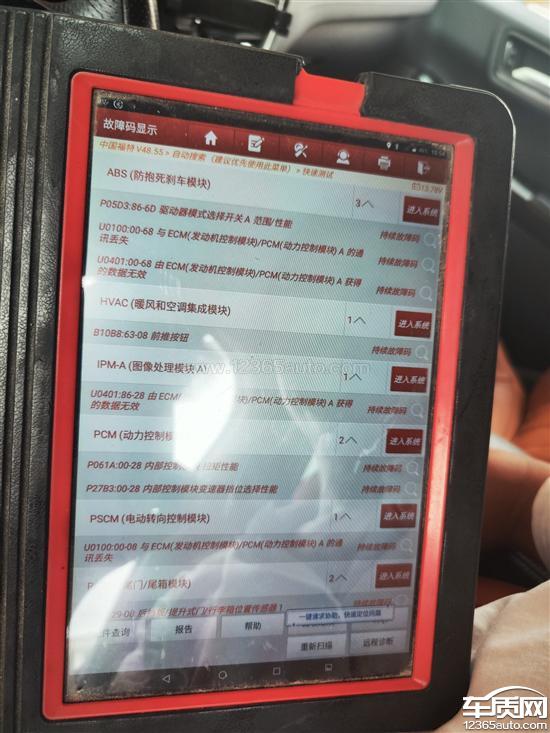 高速正常行驶,突然自动降挡,导致转速飙升,后又出现加油(踩油门)无力,提速缓慢。下高速后换挡异常,并且出现踩刹车熄火等情况,同时车身伴有轻微抖动状态。