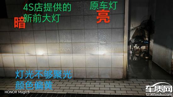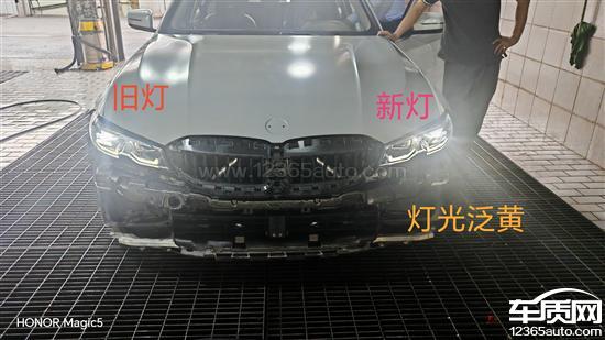 尤其是在试灯新购前大灯明显灯光效果不如原车前大灯,照片能直观呈现,包括标识也明显不一样。旧大灯标识虽然有灰尘但上面的打印字迹依然清晰可见。反观新大灯标识字体颜色字体光滑程度明显不如原车大灯标识。 4S店把真实情况反馈给大灯厂家,厂家敷衍回复,认为他们的灯没问题,还说我的旧灯使用6年有色差,回复内容极其不负责任,颠倒黑白,拒不承认自己造的灯有质量问题。打电话到宝马客服服务热线进行合理正当诉求,客服热线又把问题转移给经销商解决,经销商找大灯厂家,厂家效率低下,连续5个工作日,都保持沉默,不给4S店回复如何处理此事,给我一个满意的答复。
