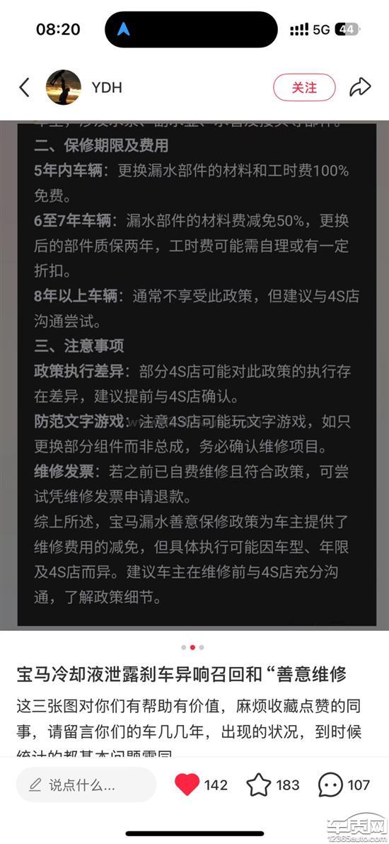 冷却液泄漏,5质保期,按照善意维修条款不同意免费,4S店不承认通病及条款。