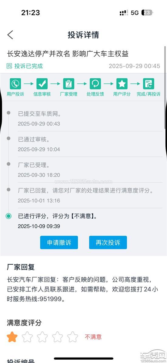 自2023年7月17日购车后,一直没有关注车主有关消息,直到2024年初才在网络上看到相关信息,长安旗下品牌逸达直接更名为逸动,并且新车价格直接降低2万元整。就等于说6个月不到的时间新车已经折价2万元,2万元白白打了水漂,那二手市场几乎可以说已经卖不出价格,对于以后有换车需求的客户来说伤害是极大的,这种行为对消费者是及其不负责任的,更是打击了爱国人士支持国产的热情,国人会不会更加担心国产品牌的售后服务能力。往小了说只是对长安这个品牌有影响,大不了以后不选择长安,往大了说就是在打击国人支持国产的热情,以后谁还敢买国产汽车,大家都不选择国产汽车了,那将是对我国工业化的巨大冲击,此行为影响的不只是购车者的权益,更是对国家利益的损害。希望厂商能做出合理的解释以及对老车主的补偿,给车主和社会一个交代,做出一个大民族企业该有的企业精神和社会责任感。另外,打电话给4s店维权时,店员态度极其嚣张,打电话过去第一句话就问我什么意思,还有两分威胁的意味,称此为厂商改名,与4s店无关,还大言不惭“车子涨价了我是不是要把差价退给4s店”,就问这样的服务态度让消费者何等的寒心,我们做为平头老百姓,把钱交给他们,好像车子出现问题他们可以不管不顾,连最基本的补偿都没有,谈到补偿问题店员就开始录音,好像我们做为消费者争取自己的利益就像要是敲诈勒索一样,导致我本人不愿与4s店人员沟通。希望厂家能给一个合理大家都能接受的方案。投诉这么久,到目前为止没人联系我处理!