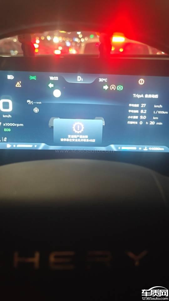 奇瑞虎9变速箱故障修了两年一直没修好,目前出现9次,售后和厂家也找不出原因来该换的都换了,就是修不好,这车对出行已经有安全隐患了,几次开车途中突然停下两次险些被后车追尾,都是没有任何预兆和缓冲只要仪表盘跳变速箱故障直接就停下,多次投诉无果,修也修不好,换也不给换,电瓶也亏电更换,一直担心跑高速的时候要是突然停下,对自己人生安全存在很大隐患。