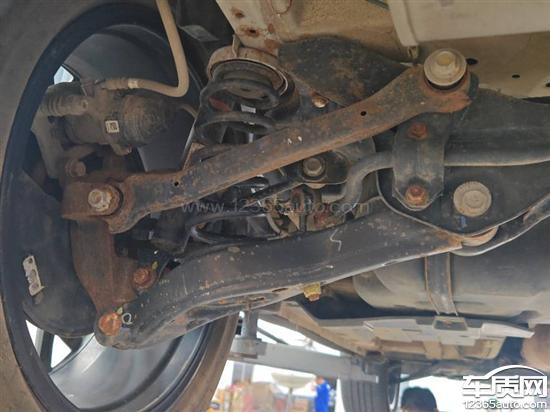 底盘大面积生锈,螺丝固定的悬架以严重腐蚀。悬架有断裂风险。