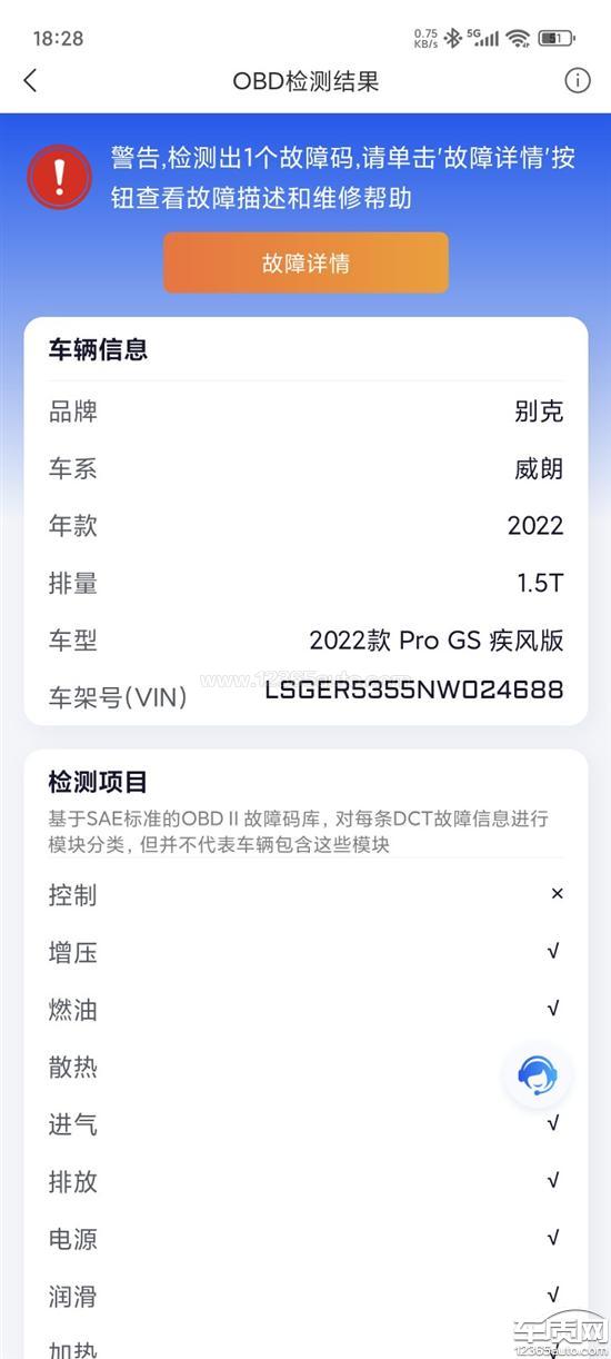 别克威朗仪表显示发动机故障灯亮,车辆点火风扇最高速运转,跳故障码,和4s店反馈说不在质保范围。