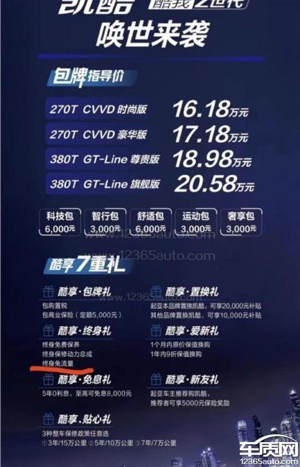 该车9与上市,9月22日下单,宣传写终生免流量。后被告知需要在9月17日前下单才是终生免流量,妥妥的先斩后奏,如果你是9月17日前才是终生免流量,那请标明,现在矢口否认,在心虚什么呢?宣传终生免流量,但是自行更改规则,后来拟定个17日是玩不起了吗?我请问厂家,9月17日这天你们愿意说几号就是几号?图片写的清清楚楚,明明白白,就是玩弄消费者。打厂家电话就是让4S店回复。4S店工作人员明确表示,这事情就是厂家自主修改游戏规则他们也没有办法,还是只有找厂家。踢皮球这事就是厂家不负责任的态度。自己不承认了可是互联网也是留下了痕迹的。另外,9月份同批购买的已经得到解决。所有客户不能一视同仁吗?作为起亚的回头客车主,是什么原因让厂家区别对待?