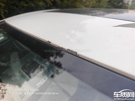 2025年车顶和前挡玻璃连接处出现掉漆情况,且随着掉漆边缘开始生锈,生锈面积约指甲盖大小,某一次洗车不经意大小车顶出现成片车漆脱落,脱落面积约手掌心大小,且脱落边缘车漆起鼓,明显是面漆和底漆分离,另外发现高位刹车灯外壳断裂,存在车顶漏水风险,在网上咨询发现这两个问题在网上有很多车主遇到相似问题,属于设计通病。