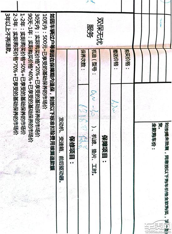 2024年3月底在广汽丰田购买一辆雷凌,购车合同明确约定6年18次保养且无任何条件,后续4月份或5月份4s店又诱导签订一份双保无忧合同。2025年9月到4s店保养,接待人员告知未到保养时间,说保养需半年或一万公里。无论是购车时还是签订双保无忧合同时销售人员及4s店均未提及并告知半年或一万公里保养一次,没有对条款进行必要的解释和说明,条款隐藏不明确,合同欺诈。不能履行购车合同约定的6年18次保养。