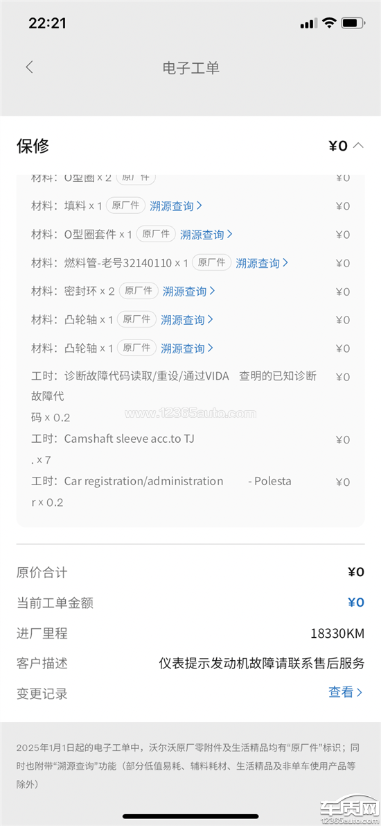 亚太沃尔沃S90凸轮轴磨损 存在质量缺陷