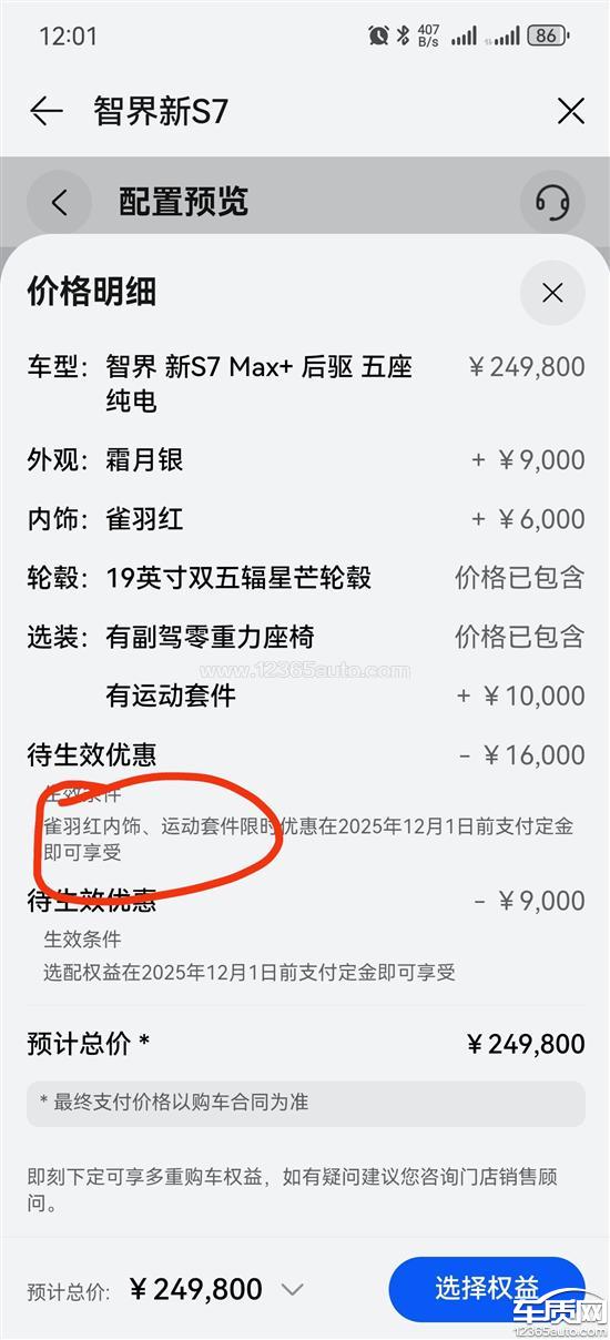 本人于2025年9月16日在安徽下定2026款智界R7max+银外内红版本,选装红色内饰(下订时红内饰需额外支付6000元),目前仅支付5000元定金,于2025年9月16日确认交付方案,预计4-6周提车。至今车辆准备中尚未提车。2025年11月4日,该公司对同款车型及选装配置变相降价6794元(红内饰由付费6000元变为免费,并增加了价值794元鸿蒙智行百万交付礼。)。经与销售及公司沟通,公司拒绝为本人订单补差价或进行退订重订,导致本人尚未提车就损失6000红色内饰+794百万交付礼-1000元选配权益=5794元。根据《消费者权益保护法》,消费者享有公平交易权,商家价格变动应保障已订车消费者的合法权益。本人现强烈要求:1、按照最新销售价格及其权益履行购车订单,补退差价5794元;2、若1无法履行,应当允许退单重订,并匹配旧订单车辆。