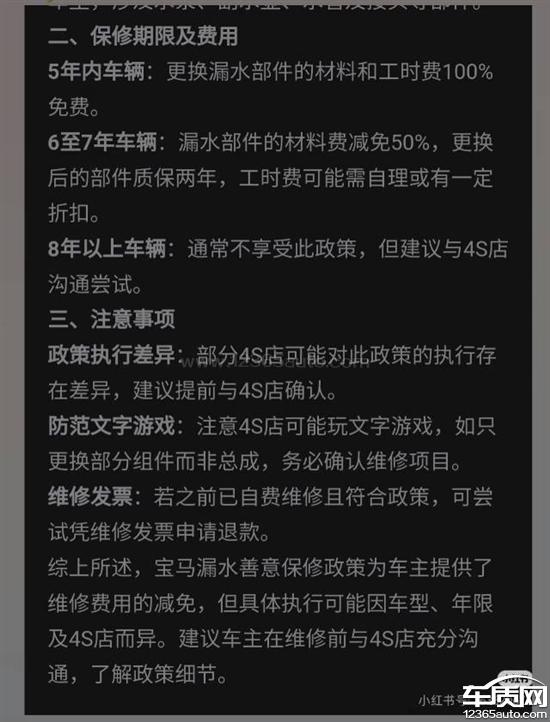 2025年8月19日车辆跳冷却液不足警报,9月底回店保养后工作人员告知冷却液漏液严重,现在以车辆刚过保修期且当时发现警报没有进店登记为由不予保修。该车型确实有宝马中国&华晨宝马公司发布的冷却液漏液维修通告,车主尚未意识到该问题严重性,直至通过媒体平台信息传播后认识到问题严重。但是该车辆确实在8月已经有后台数据通知警告,4s店仅以未到店为由不予维修,但是这个理由不能否认该车辆是在保修期内漏液的质量问题。