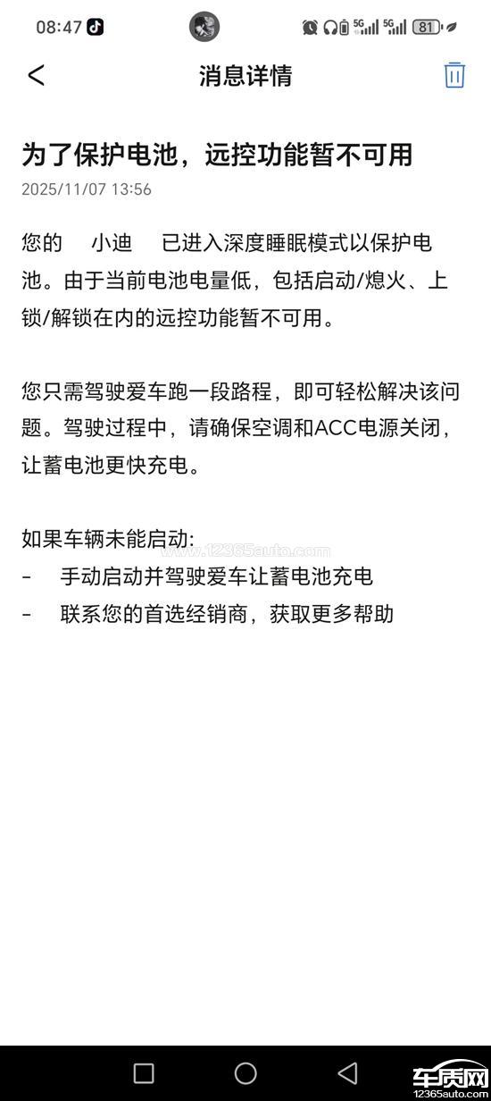 两年多,年年都充满电!年年都有远程启动禁止使用的时候,电池存不住电。