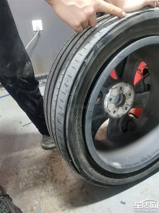 汽车四轮定位有问题,导致轮胎内侧壁磨损严重,路上爆胎,送修理厂卸下来发现四轮定位有问题,两个后轮轮胎内侧侧壁完全磨损掉。