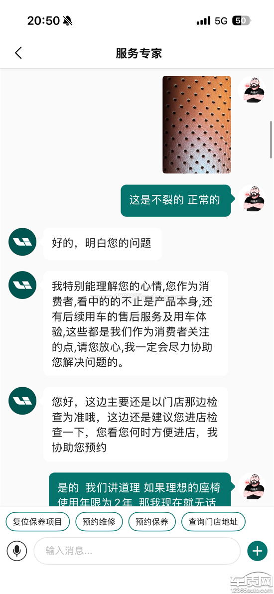 23年5月购入理想l9一辆,正常使用车辆两年六个月左右,主驾座椅左侧腿部坐垫皮开裂,在年限于公里数均在售后期内进店售后沟通被拒绝,理由是正常使用痕迹。如果2年多的座椅就开裂,那这个座椅的使用年限是多少?