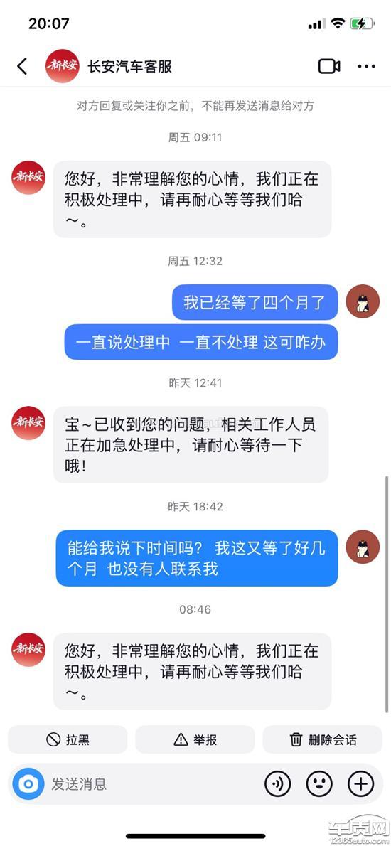 长安汽车厂家回复:客户反映的问题,公司高度重视,已安排工作人员联系处理,如需帮助,欢迎您拨打24小时服务热线:951999。