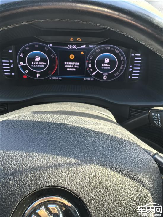 跳出来变速箱的故障显示,不升挡,这个是大众的通病,在高速上开车突然发生报警,车子不能加挡,非常危险。