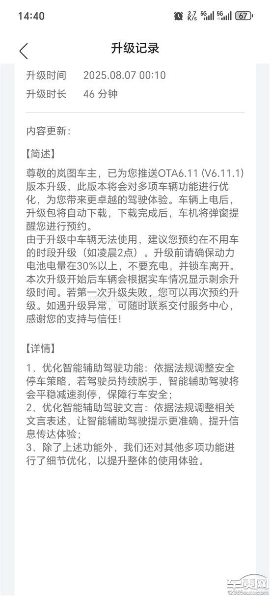 岚图汽车厂家回复:用户反馈的问题已跟踪处理