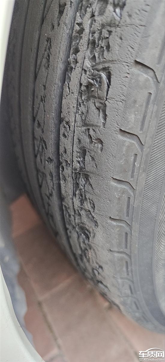 新车买来不到1万公里,前面两条轮胎就磨损严重,轮胎表面坑坑洼洼,开起来还伴有严重的异响。要求处理。