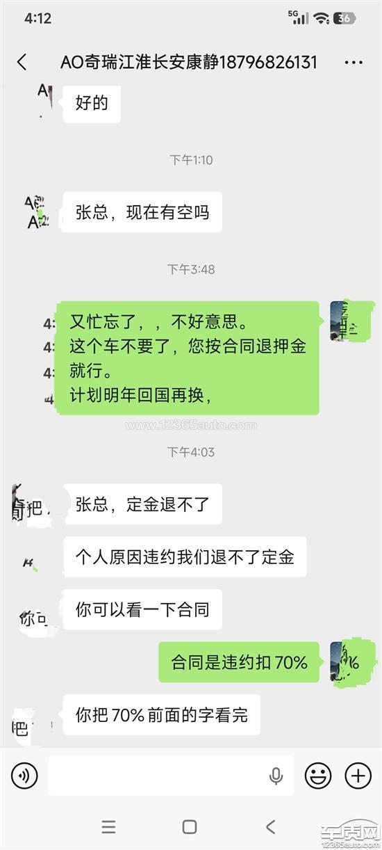 押金不退,对车市不了解,甘愿交学费,贷款安排高利息,接受不了,全款算下来不划算,订金按合同退我30%我都认。权当买教训,结果分文不退,要求处理。