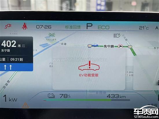 突然出现EV功能受限,车速降到50,速度踩不上去。