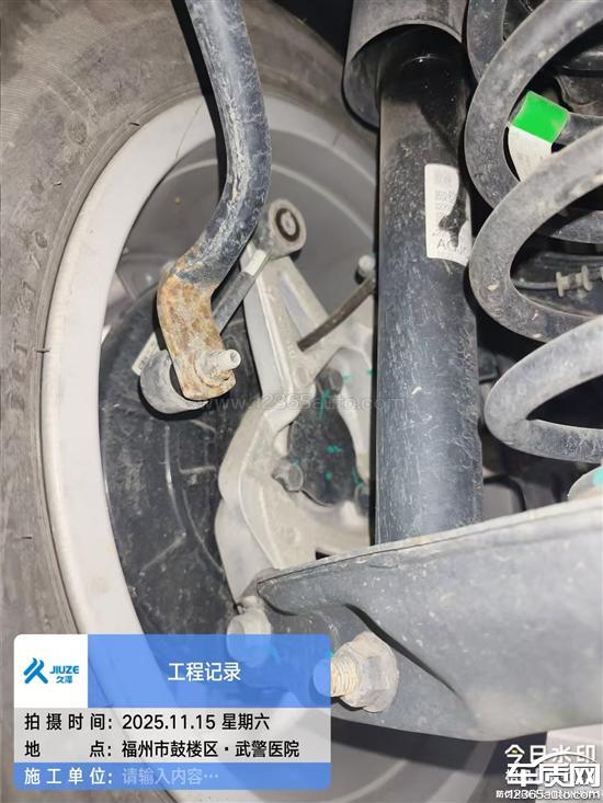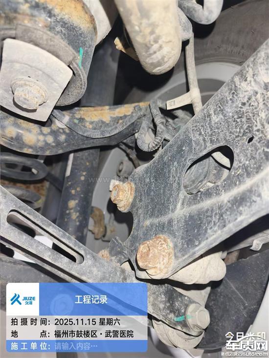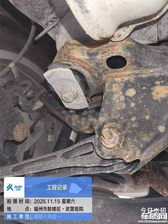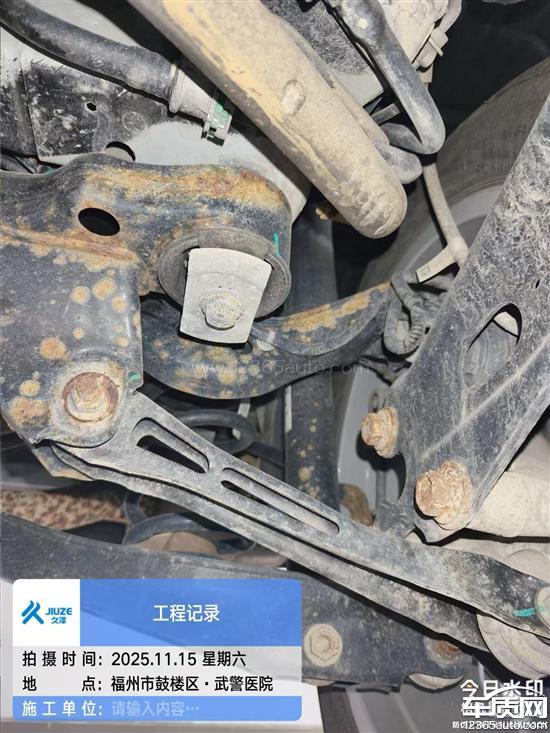 该车于2024年1月购买,目前行驶里程为9806公里。2024年6月进行首次保养时未亲自检查底盘,今年6月第二次保养时发现车辆后部底盘螺丝、排气管及部分零件锈蚀严重。