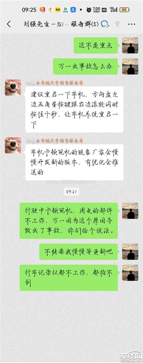 昨晚九点多驾车行驶中突然死机,车灯和用电部件全部不工作,车机自己重启后卡顿。因为这个原因给我带来很大的安全威胁。和4s店沟通后只是让我慢慢等更新,不提这事以后万一出事故怎么解决。
