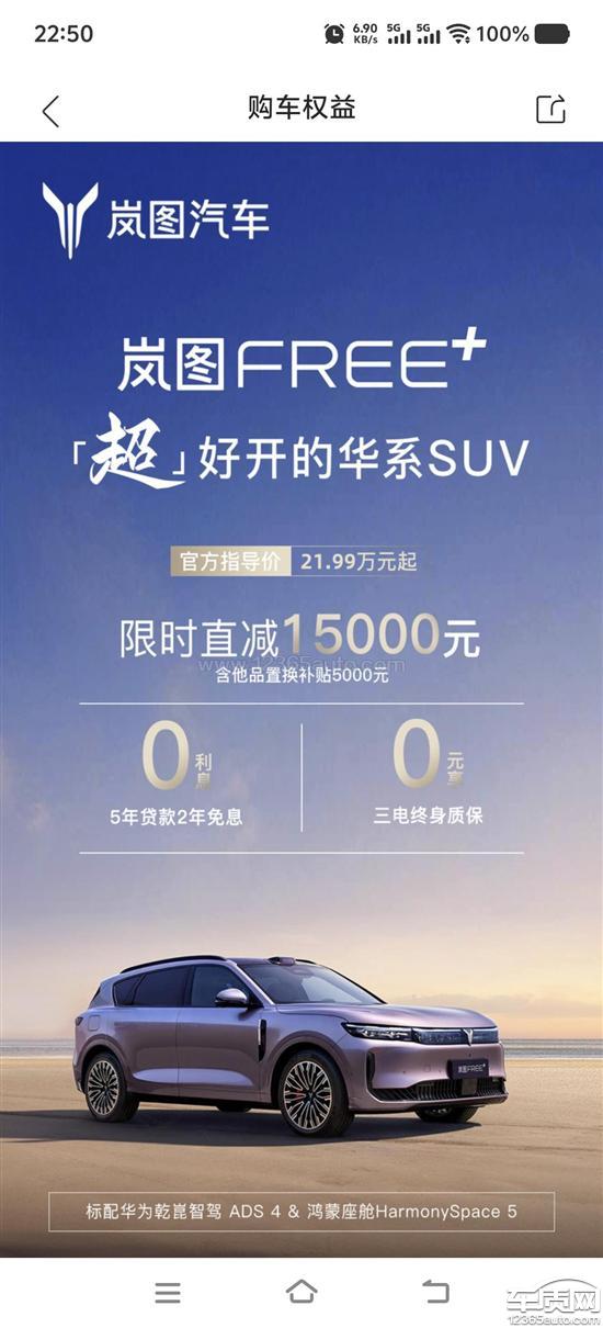 岚图FREE购车短期内厂家大幅度降价