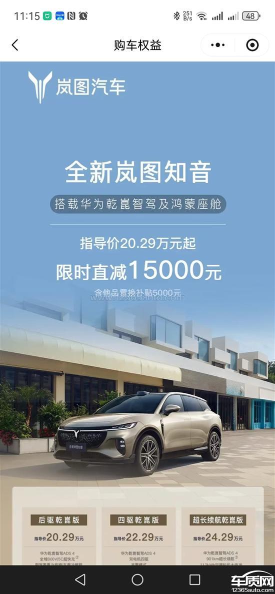 本人于2025年10月30日刚购入2025车款岚图知音后驱乾崑版,短短1个月左右的时间,车辆质首保都没过,官方竟突然宣布降价一万元!可以理解年底为了销量,做出相应价格调整也是合理的,但是对于新购不久的老用户来说,确实让人很寒心,我们以更高的价格支持新品,换来的却是瞬间的资产贬值和信任崩塌。这绝非正常的市场行为,而是严重损害消费者利益、透支品牌信誉的短视之举。我对此表示强烈不满与抗议!现严正要求岚图品牌方立即就差价问题,对老用户给予相应的补偿。
