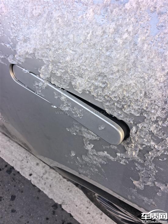 车门拉不开,需要用刀子把玻璃缝隙里的冰割掉才能打开,门把手打开之后,恢复不到位。