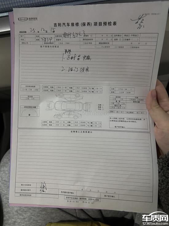 吉利汽车厂家回复:您的信息我们已经收到,将尽快协调相关4S店与您核实处理,厂家也将持续关注后续处理情况。感谢您的支持与谅解,如有疑问欢迎您致电吉利汽车客户服务热线:400-886-9888。