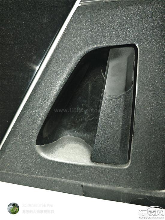 后备厢塑料件出现变色,且与车身油漆颜色不一致,同时后门把手存在严重掉漆问题。车辆使用时间尚短便出现此类情况。前往维修店检查时,工作人员均表示后备厢盖塑料件曾被更换过,但本人从未进行过任何更换,车辆始终为原厂状态。