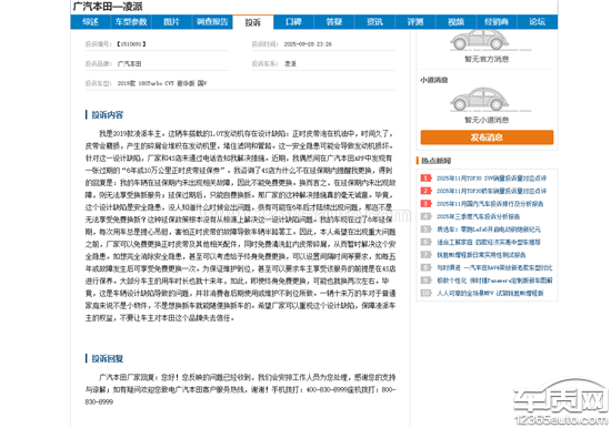 广汽本田厂家回复:您好!您反映的问题已经收到,我们会安排工作人员为您处理,感谢您的支持与谅解;如有疑问欢迎您致电广汽本田客户服务热线,谢谢!手机拨打:400-830-8999座机拨打:800-830-8999
