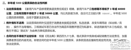 2024年12月14日,通过4S店购买了一辆工程测试车,有公里数,未上过牌,厂家自激活车机当日起提供半年或5000公里的厂商质保。车是按新车流程通过宝山交付中心交付的,我有两点疑虑,第一:工程测试车,到底适不适合卖给个人用户,第二:无论车辆属性,交付给我,我都属于第一任车主,质保只给了5000公里或半年,是不是都不符合国家规定,就算是二手车,都有国家规定的质保年限。多次和智己厂家400反应,无果,也不允许我花钱购买延保。工程测试车既然取得了,各类合格证,卖给个人用户作为私家车使用,明显适用于汽车三包法,任何合同条款都不能凌驾于法规之上,违反法规的合约就是一张废纸,没有法律效益。