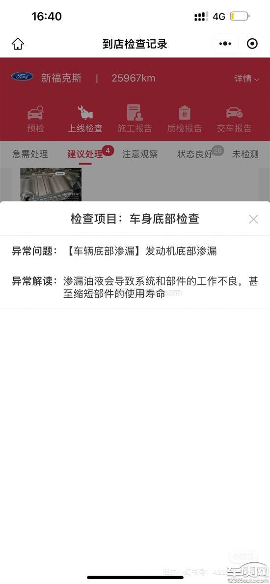 本人于2022年12月22日购买了一辆福特新福克斯。车辆在正常使用期间,一直按照厂家要求进行保养,且无重大事故或人为损坏记录。2026年1月5日,本人在途虎养车工厂店进行常规保养。车辆底盘升起后,维修人员发现发动机存在严重渗漏机油的情况,漏油痕迹分布广泛,油渍积累明显,这表明渗漏问题已持续较长时间,并非短期内突然形成。考虑到漏油问题的严重性与渐进性,本人认为该渗漏在车辆三年保修期(2022年12月22日至2025年12月22日)内就已存在,属于车辆本身的设计缺陷或质量问题,并非保修期结束后才突然出现。发现问题后,本人立即联系购车的福特4S店说明情况,并要求其对车辆进行免费检查与维修。但4S店仅以“车辆已过三年保修期14天”为由,拒绝提供免费服务。本人认为,发动机漏油属于严重影响行车安全与车辆性能的隐患,且该问题在保修期内已具备发生条件,4S店及厂家应当予以免费检修。
