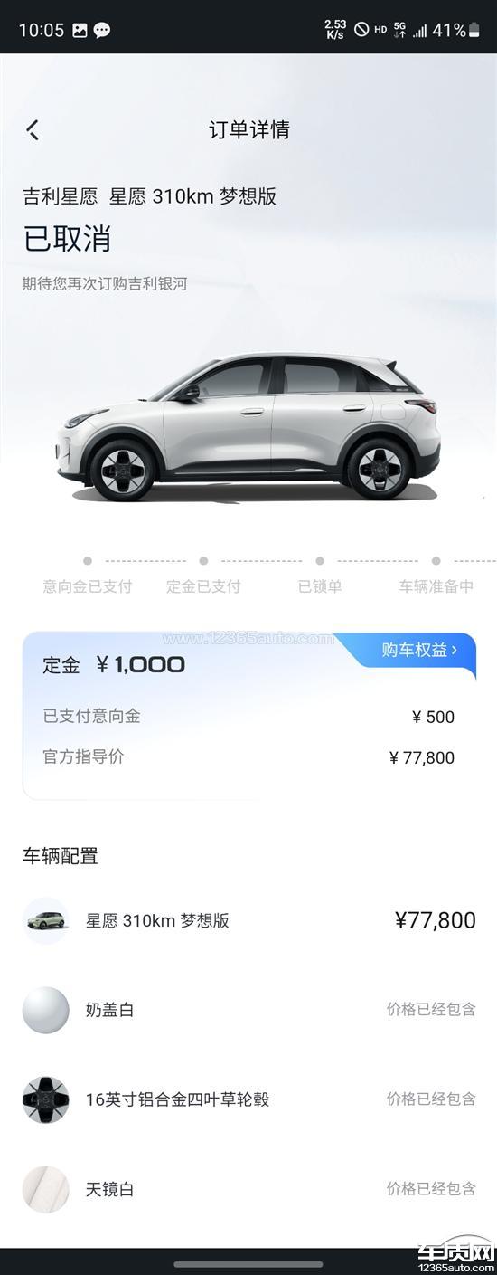 2024年10月在吉利app上交了钱,后续等车周期太久,不想购车了,钱款迟迟不给退还,直到订单关闭,这一拖就是两年了,当时在当地4s店被销售说,交了钱不想要也可以退,没给我签任何合同,现在联系当地4s店人员,他们说钱交到了厂家,不给退。问题迟迟得不到解决,投诉无门…希望车质网大佬们帮忙评评理,一共交了1500元,现在分毛不退。
