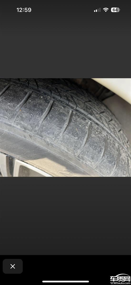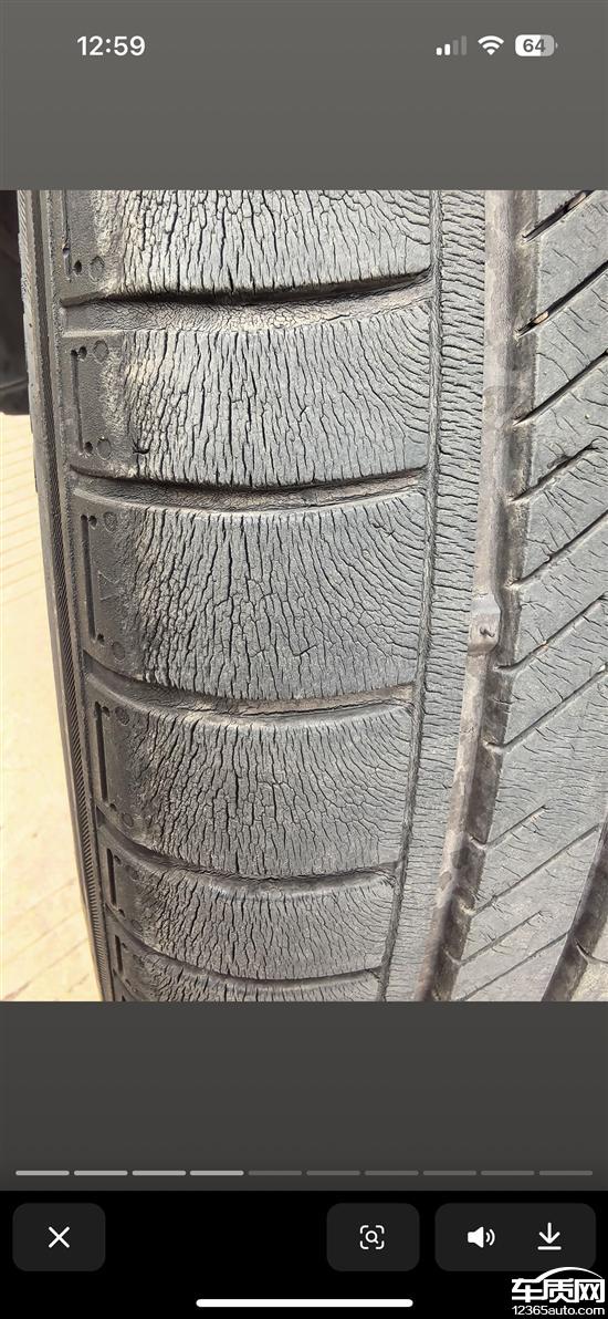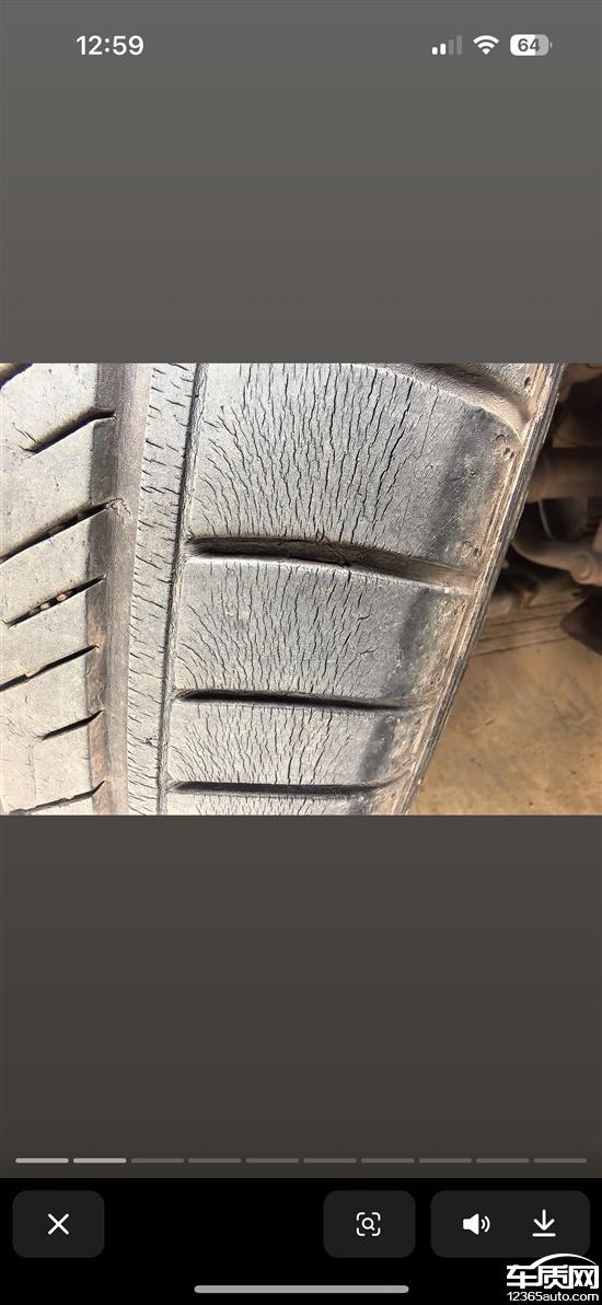 轮胎开裂严重,三角窗胶条开裂。