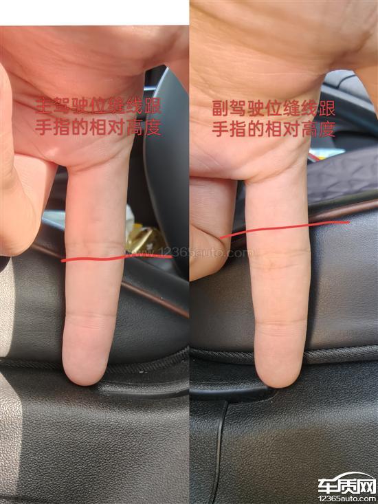 我车开了两点半发现主驾驶座椅靠近车门那边海绵严重塌陷,我上传的图片是主副驾驶两个座椅对称位置的海绵高度对比,可以明显看出主驾驶位置相对手指关节纹下面,副驾驶则在上面,高度差已经有一厘米,这还是在人没有坐上去的时候的高度差,实际上那个位置海绵用手去摸已经完全市区弹力,海绵被轻轻一捏就扁了,而副驾驶位置的海绵则用力捏也压不扁,这样左低右高的座椅坐起来每次开车都腰酸,而汕头新鸿通4s在帮我提交更换座椅的索赔需求后回复给我厂家拒绝索赔,这让我很惊讶,这么明显的质量问题厂家却视而不见。希望车质网能帮忙主持公道。