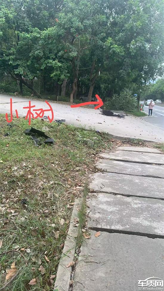 小鹏P7+事故及车辆性能质疑:一、事故经过:2025年10月29日,我驾驶小鹏P7+在道路上正常行驶,未开启辅助驾驶,行驶速度约60km/h。因一时分心,方向盘握偏导致车辆驶向路边绿化带,回过神后紧急踩刹车已来不及,车辆先撞上一棵小树并将其撞断,随后继续向前行驶约20米,撞上一棵大树后才停下,方向盘气囊弹出。值得注意的是,第一次碰撞小树后,我已用力踩下刹车踏板,但车辆未如预期有效制动,仍持续向前行驶,直至与粗壮大树发生猛烈碰撞才停下,此次撞击直接造成严重损失,前保险杠断裂、发动机损毁,售后门店维修预估费用达8万元。(行车记录仪视频显示,8:17:33发生第一次撞树,8:17:37车辆停止)二、核心质疑:1.主动安全功能缺位:小鹏P7+宣传配备AEB功能,为何此次事故中该功能完全未被触发?此前有两次在红绿灯路口缓慢接近前车时,AEB功能均正常触发,此次事故场景下却未启动,无法理解功能触发逻辑。2.刹车系统表现异常:第一次碰撞后,我始终保持踩刹车状态,中途因制动无响应慌乱中点了一下电门,但立即换回刹车,可车辆仍无有效制动,持续向前行驶,怀疑刹车系统存在故障。3.车身刚性不足:车辆仅先撞断一棵小树,后续撞击便造成严重损毁,质疑车身抗撞性过差,不符合应有安全标准。