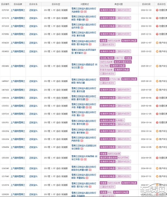 发动机系统通病:冷启动时抖动明显(前5分钟尤为严重),ESC/发动机故障灯常亮,排气不规律,动力下降。同时存在冷启动困难、怠速抖动、燃油轨道压力过低的问题。经查询,这是迈锐宝XL搭载的LSY/1.5T发动机存在的气门摇臂磨损、高压油泵/燃油泵控制模块(FPCM)设计缺陷等通病。车身电器通病:高位刹车灯灯罩/底座开裂(已进水,存在刹车警示安全隐患),这是2017款及前后车型的典型通病,多位车主反馈厂家可免费更换。P挡微动开关故障,仪表提示“未挂入P挡”(实际已挂入),导致无法锁车、漏电、无法正常熄火/启动,这是换挡机构设计缺陷导致的通病。