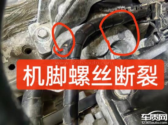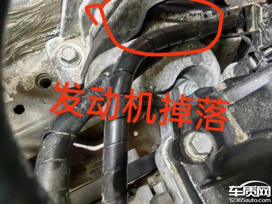 行驶过程中20码,发动机机脚螺丝突然断裂,导致发动机掉落,危险至极,还好不是高速,人员未伤亡。