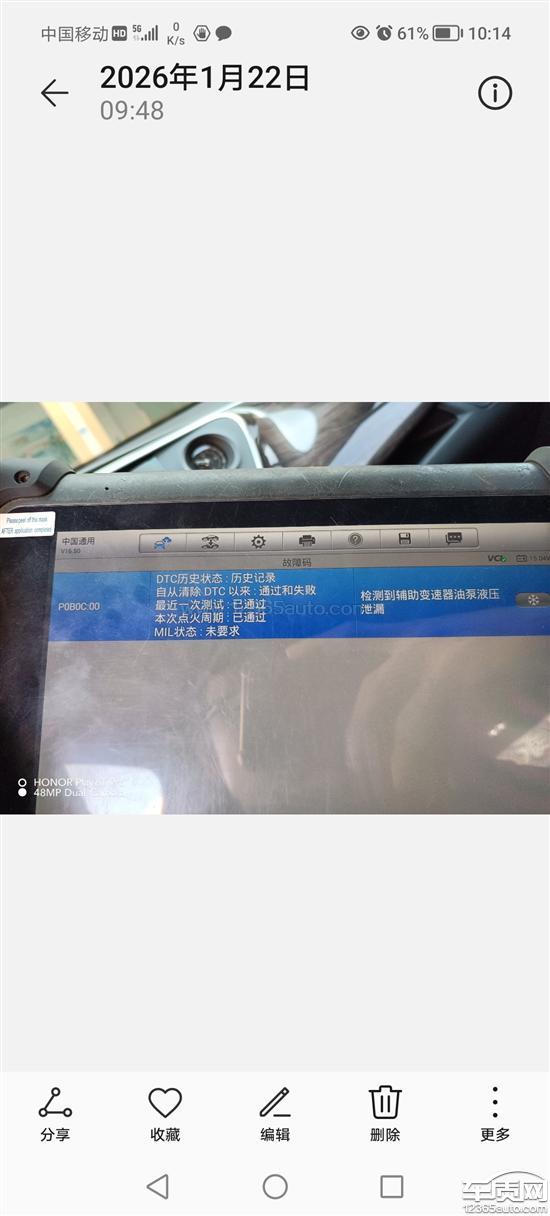 别克昂科威发动机故障灯点亮 加速无力