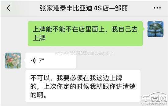 张家港泰丰比亚迪4S店强制要求委托其代办车牌,并收取1000元高额服务费用,比亚迪汽车低价售车依托附加项目和售后服务赚取利益,霸王条款变相侵害消费者合法权益。23年购车至今26年厂家未处理该投诉毫无信任更无社会责任。