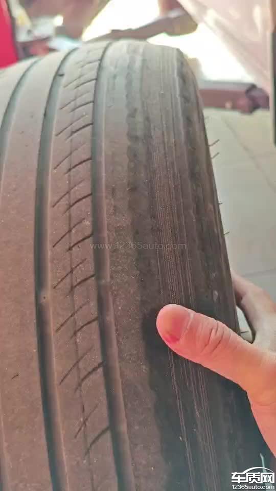 整车前轮都没有到磨损线,在换胎时发现前轮内侧偏磨,严重吃胎,整个帘布层外漏。