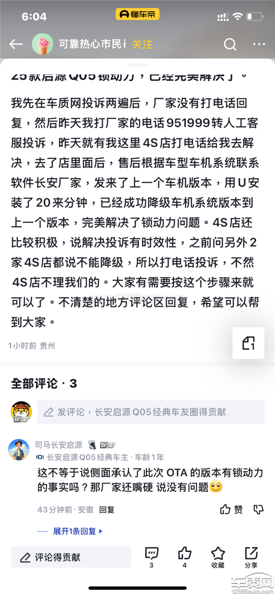 长安启源厂家回复:客户反映的问题,公司高度重视,已安排工作人员联系跟进,如需帮助,欢迎您拨打24小时服务热线:951999。