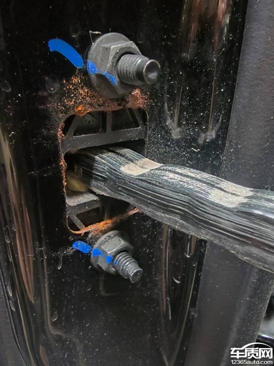 比亚迪秦PLUS车辆车门限位器处严重锈蚀(如图),产品质量问题,要求处理。
