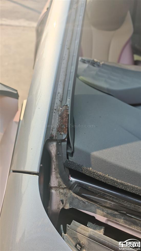 前挡玻璃开裂位置存在锈蚀,更换前挡玻璃时发现A柱锈蚀,怀疑开裂与此有关。