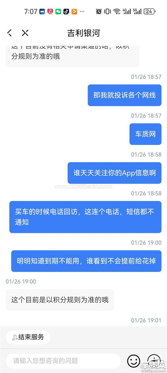 APP积分过期扣除,不通知客户,谁有钱会过期不知道先花出去,买车时候说的去4S店免费充电,买过半个月就不给充了,真可笑。