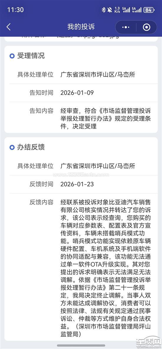 2025年9月比亚迪汽车公布比亚迪海洋网旗下车型可进行更新开放哨兵模式,比亚迪通过通知车辆监管局不会开放哨兵模式,原因是使用了塑料摄像头,长时间使用摄像头容易起雾导致摄像头损坏,但比亚迪客户依然采用拖延的方式不明确公布此事,截至目前,23款海豹DMI仍未通过OTA更新开放该模式,且未公布后续是否更新开放哨兵模式的说明。