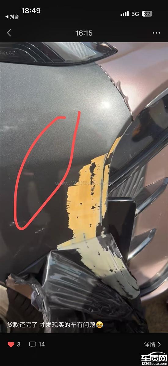2024年4月份的时候,我购买了一辆领克03,当时买的是新车,然后在店里提完车,我就直接在店里贴了膜,一年多过去了,我需要更换新的车衣,然后再次去店里面撕膜换新车,但是那个膜撕下来之后,他有补过漆的痕迹,有一大片。就发现了商家是拿出过事故的车卖给我,但在这一年内,我是没有去补过漆,也没有出过什么重大交通事故,但是商家以时间太久不承认。