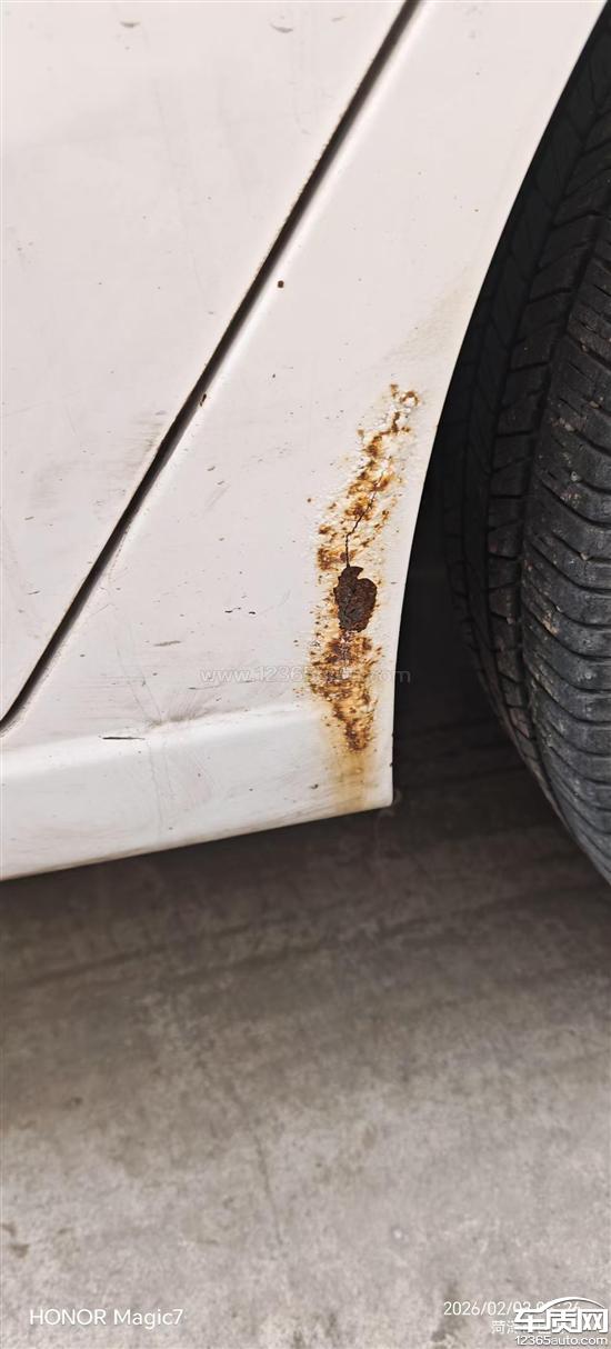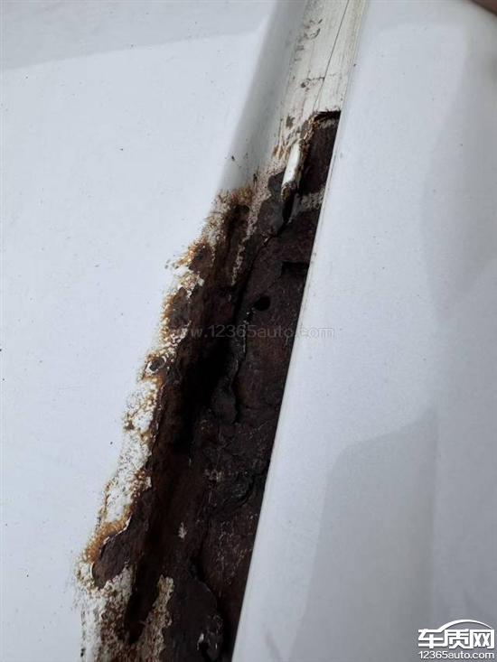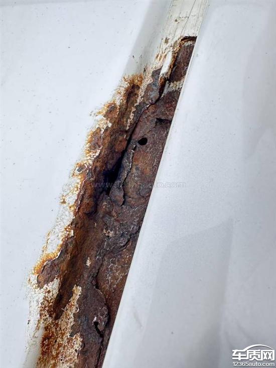车顶右后方都锈穿了,门板、翼子板、后挡风玻璃出全部生锈。后挡风玻璃下方锈穿导致后备厢漏水。